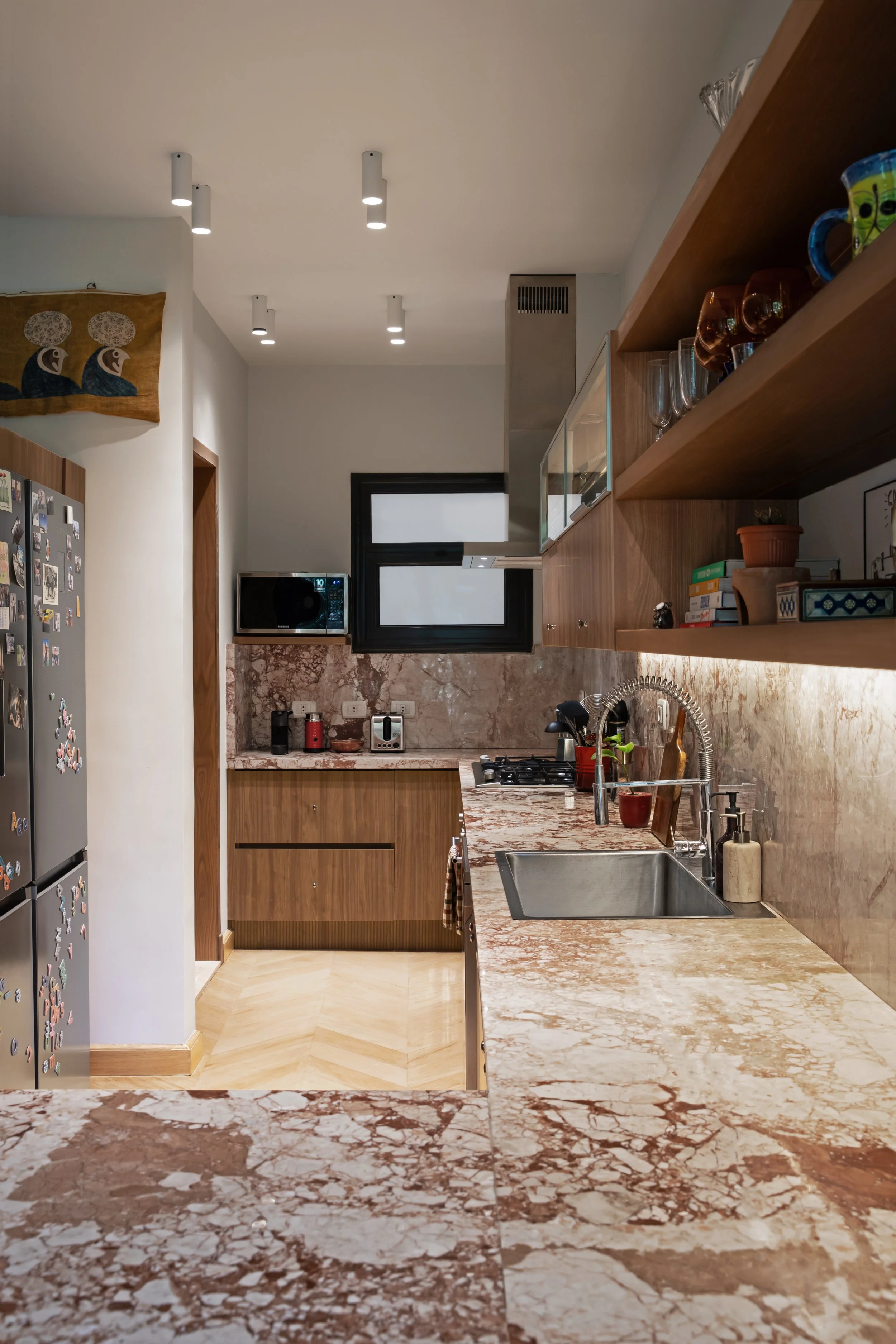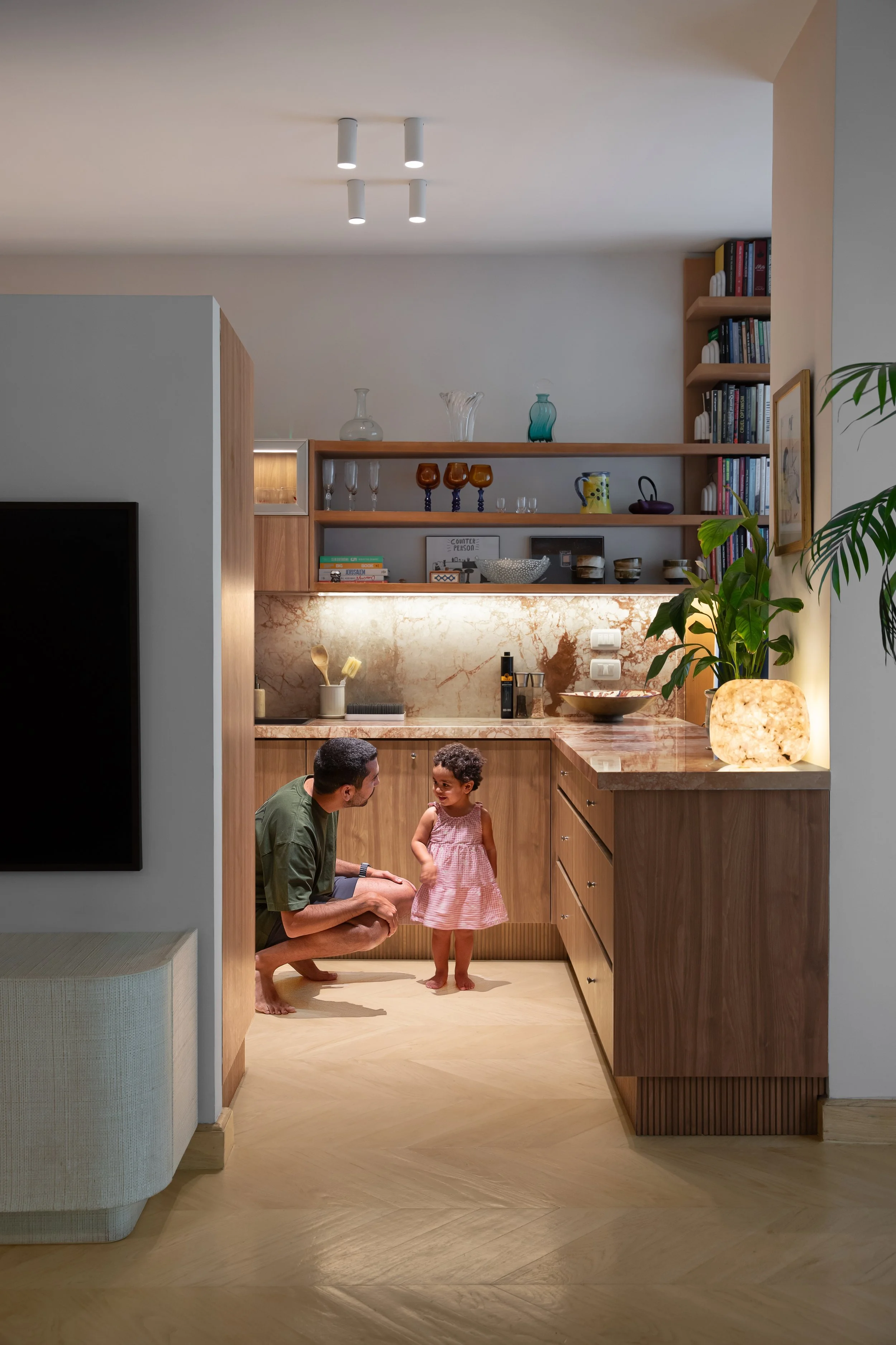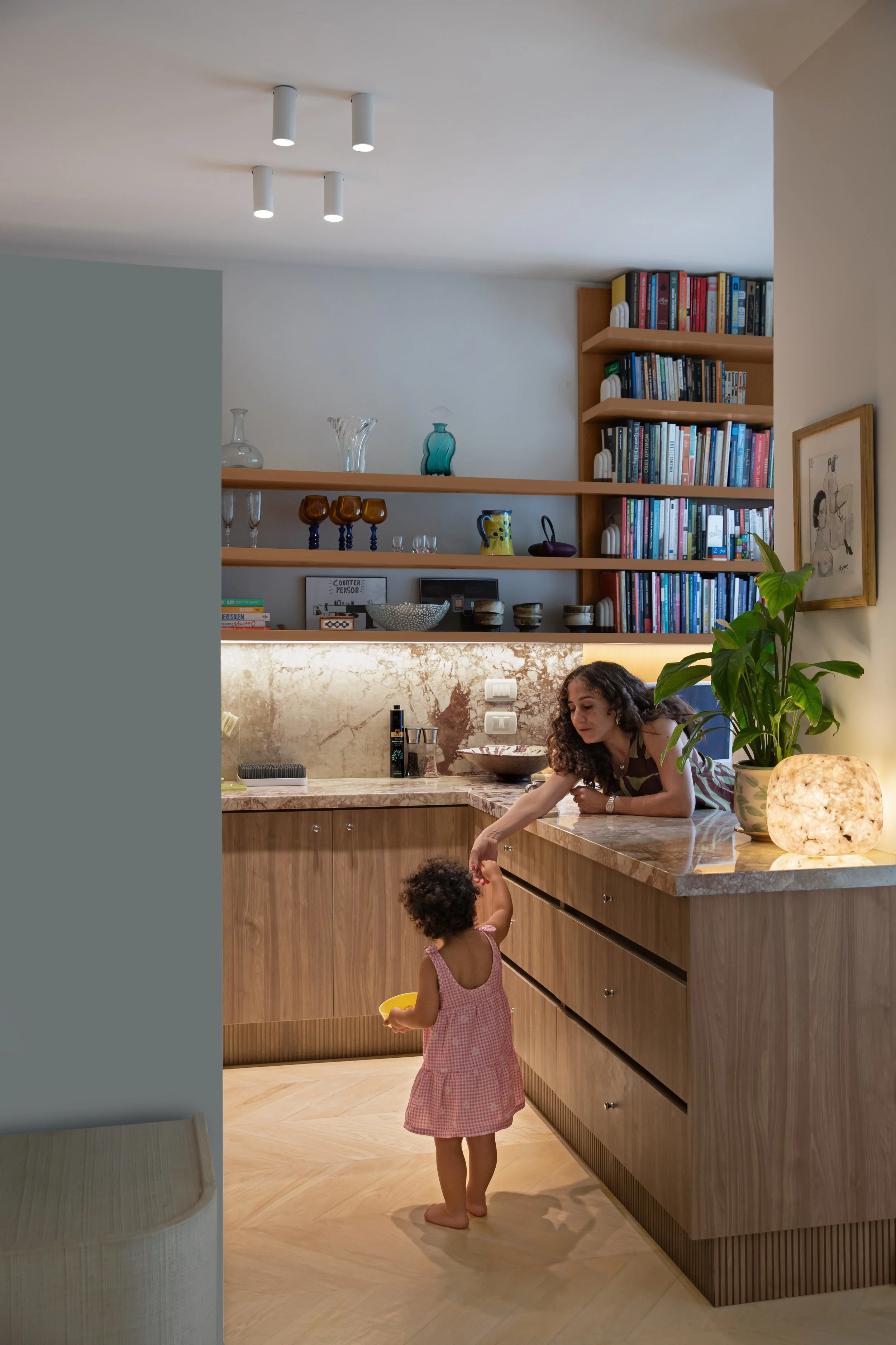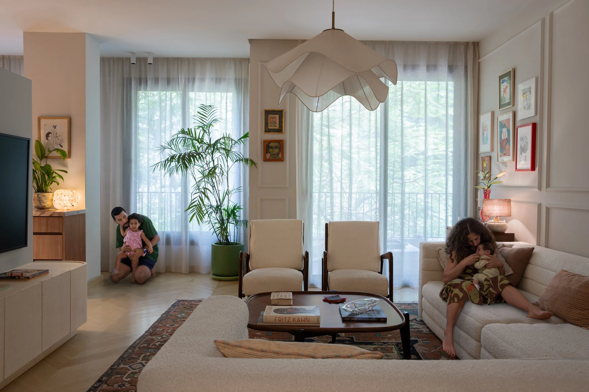 A home in Maadi, where a young family of four resides. Having recently returned from New York, it was important to them that their new space preserve that familiar essence rather than leave it behind. Serendipitously, amid Cairo’s bustle, they found a building in Maadi that ‘sits quietly within a canopy of trees.’